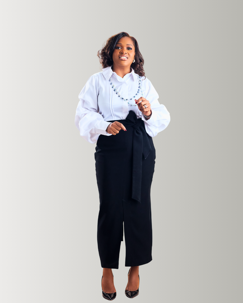 Cut in a streamlined, high-waisted silhouette, the Tsedek Skirt elongates the frame while offering a poised, architectural finish. A sculpted wrap detail at the waist introduces soft drama, balancing structure with fluidity. Designed for women who lead with grace, it transitions effortlessly from professional settings to elevated evening moments. Pair it with tailored blouses or fluid tops for a look that feels both grounded and commanding.