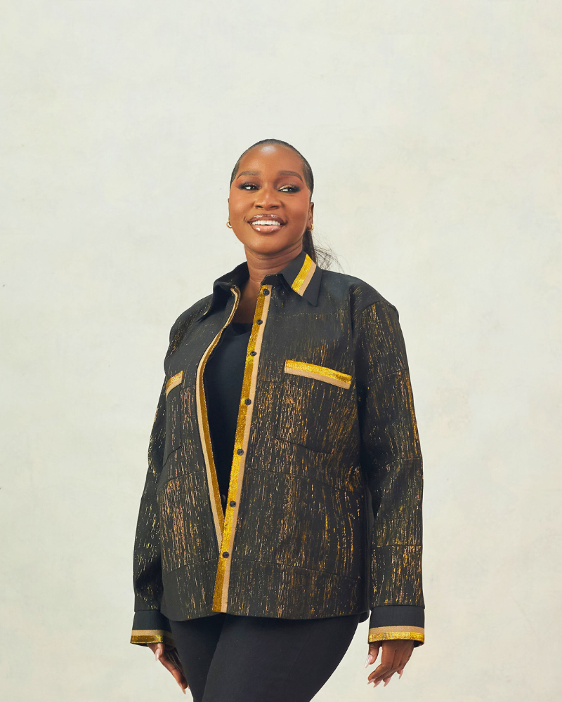 - Relaxed-fit Aṣọòkè jacket with structured collar