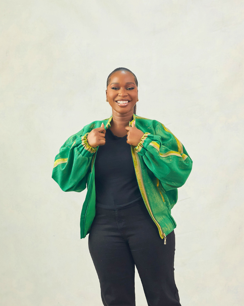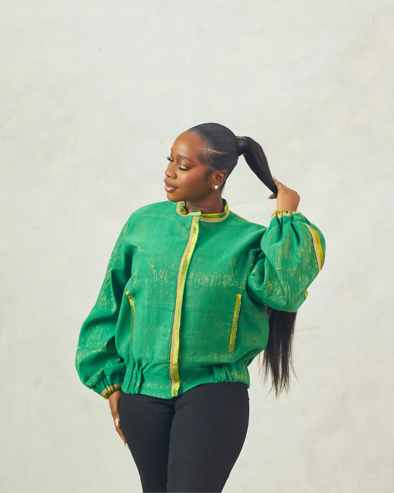 Green Aṣọòkè Bomber Jacket with Gold Details